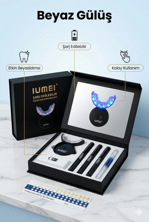 IUMEI Profesyonel 32 LED Diş Beyazlatma Seti Evde Hızlı Etkili Güvenli 4 Kalem Dahil – Siyah